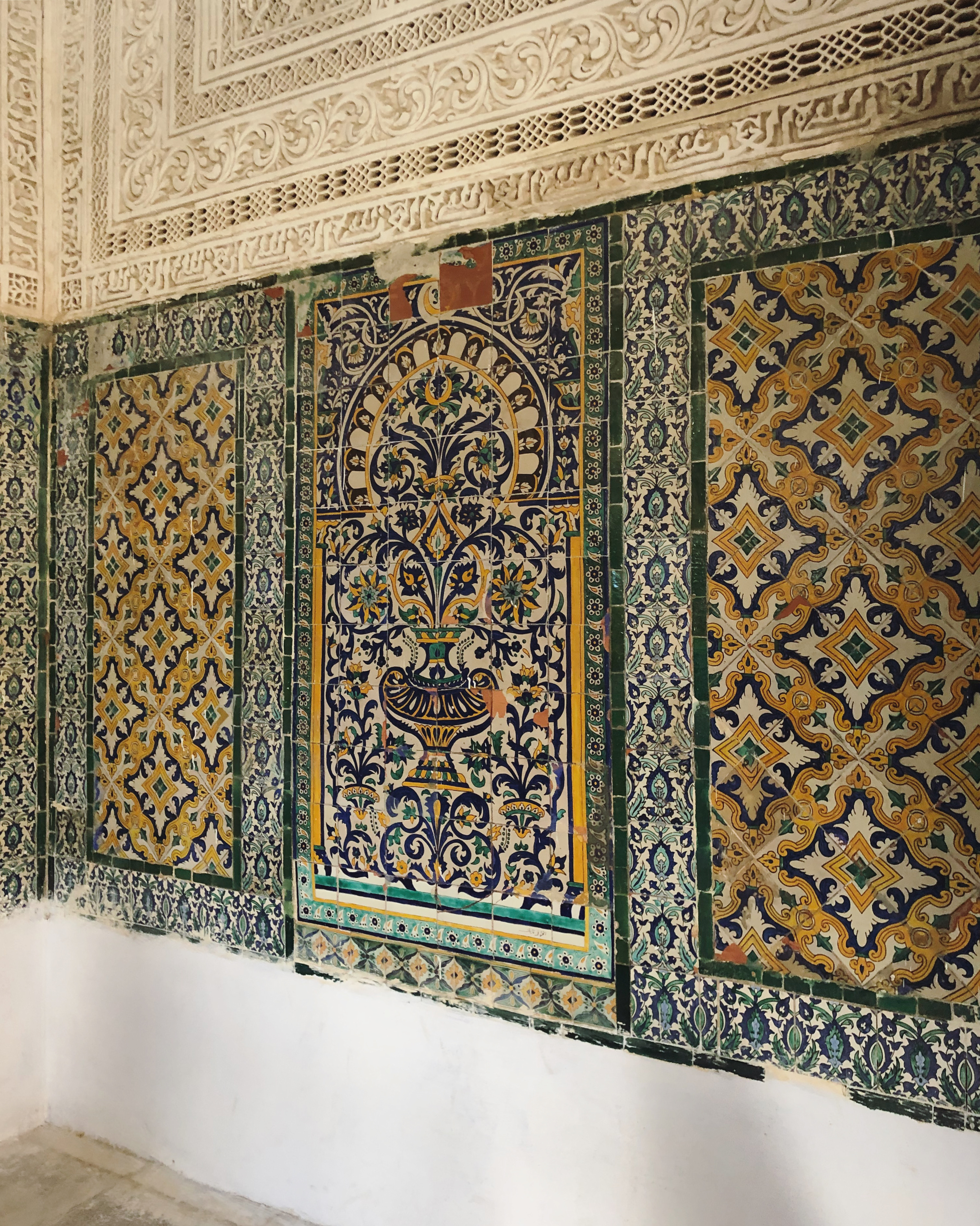 Among the curiosities of the Mosque, it is worth mentioning the Mihrab which dates back to the 9th century. The marble slats that decorate its lower part, as well as the painted in cul-de-four, constitute a decoration repertory of the beginning of the Middle Age. As for the enamel tiles brought, according to the tradition, from Iraq, they represent rare samples of an industrial technique that is still enigmatic.